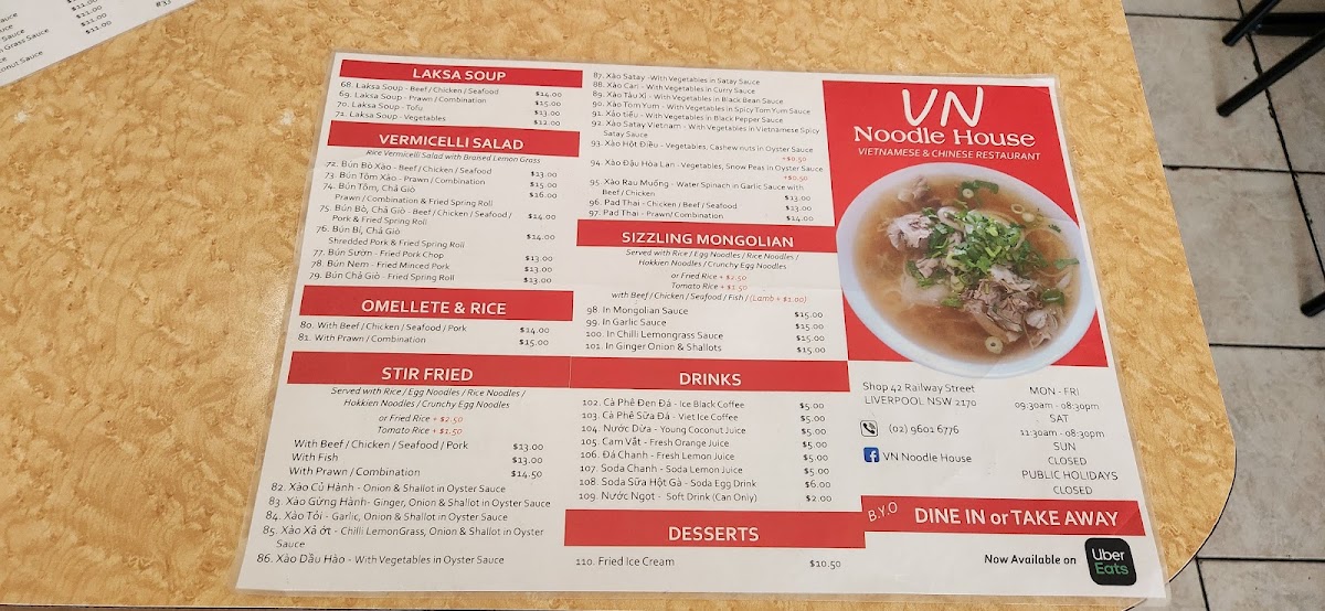 Welcome to VN Noodle House, a hidden gem located at 42 Railway St, Liverpool, NSW. This charming establishment offers a delightful array of Vietnamese dishes, showcasing the essence of home-style cooking infused with Grandma's love. Patrons rave about the soft, spongy fish paired with aromatic garlic and onion, as well as the irresistible salt and pepper squid, perfectly complemented by sweet chili sauce.